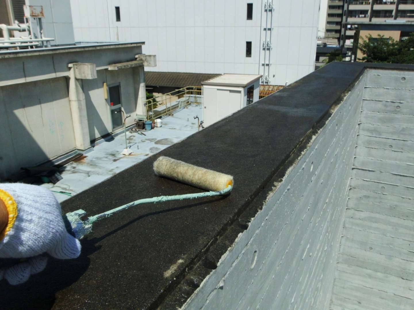 屋上笠木周辺から最上階室内に雨漏れがあり、散水調査を行い原因を見つけ出し笠木部からの漏水を確認してウレタン防水を施工いたしました。雨漏れも止まりよかったです。