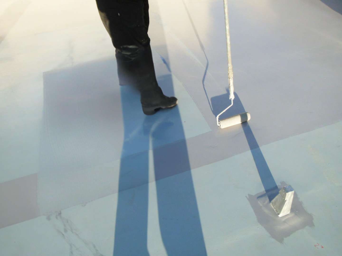 漏水はございませんでしたが、やはり既存のアスファルト防水層は対応年数を終えているので、今回新たにウレタン塗膜防水通気緩衝工法を行い、今後の防水性能を向上させました。