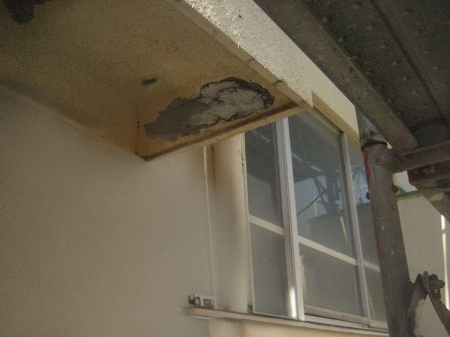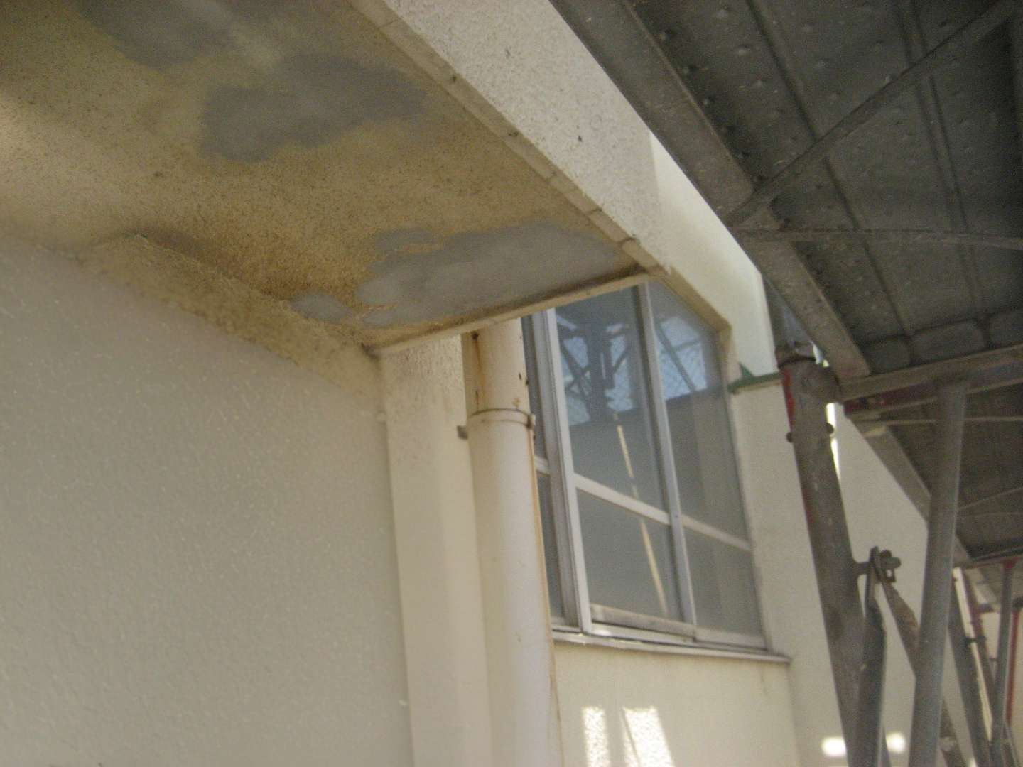東京都大田区にある中学校にて、昇降口(庇)上裏剥落補修工事を行いました。
